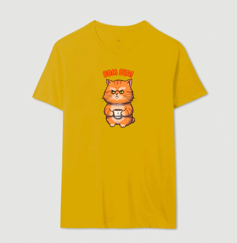 Com aquele toque sarcástico que só quem tem gato entende, essa estampa brinca com o clássico "bom dia" — diretamente do humor felino, que pode ser um tanto rabugento, mas sempre irresistível.